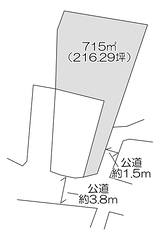 | 接道状況等 | 角地、南側 公道 幅員約3.8m接面2m、南東側 公道 幅員約1.5m接面22.8m | ||
